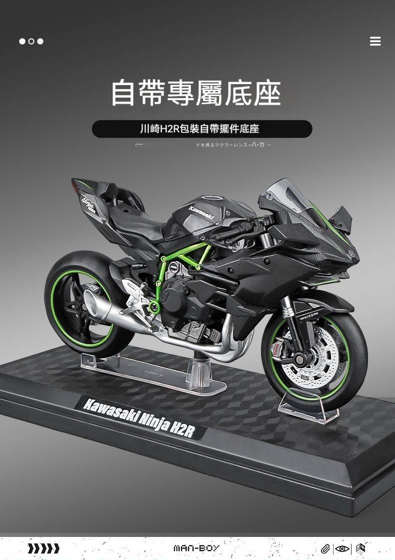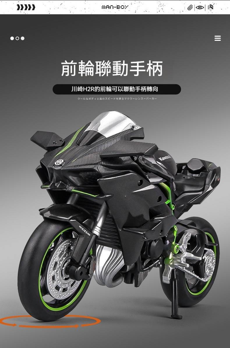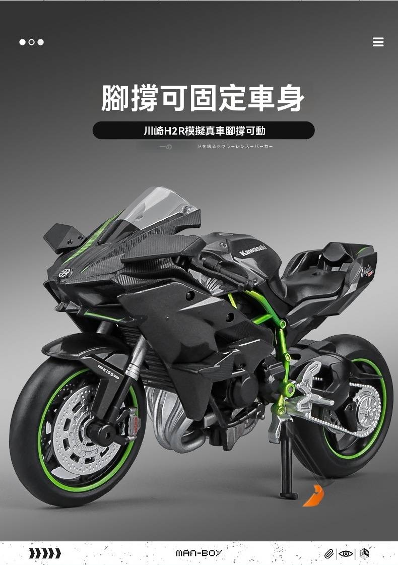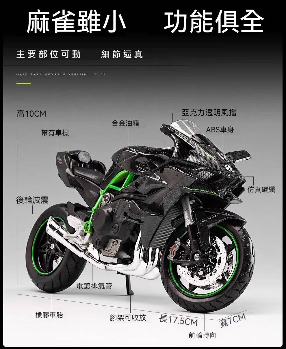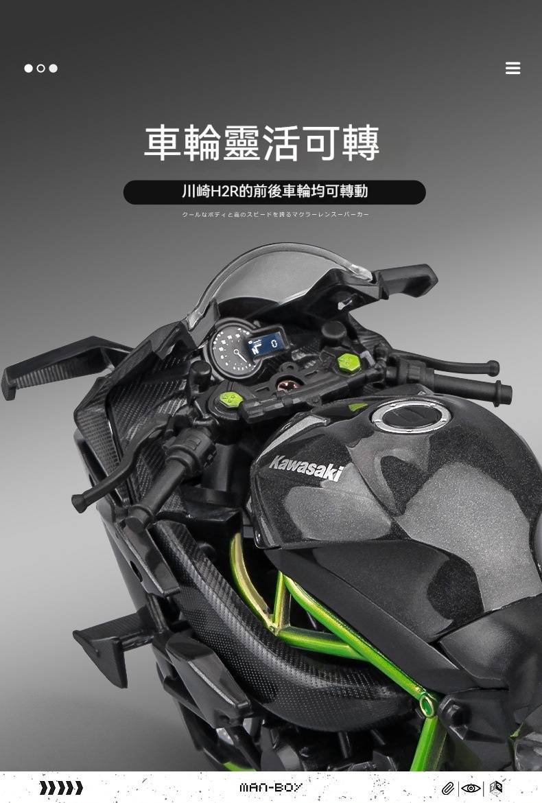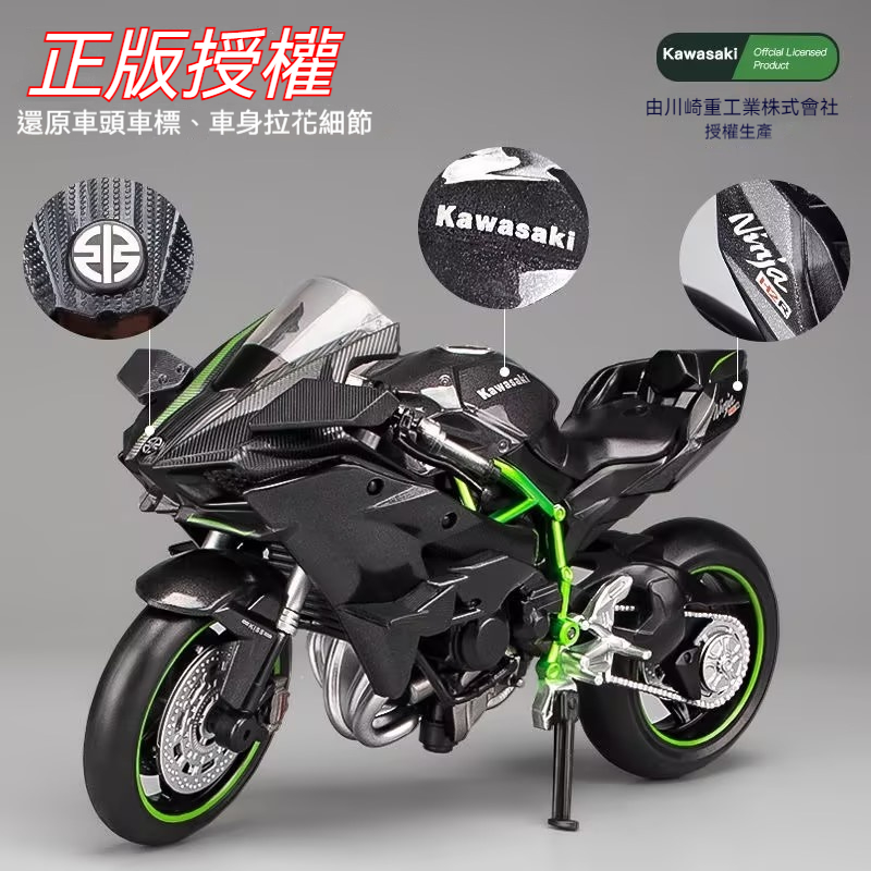 【日本正版授權】川崎忍者H2r 摩托車模型 一鍵啟動/前輪轉向/後輪減震
