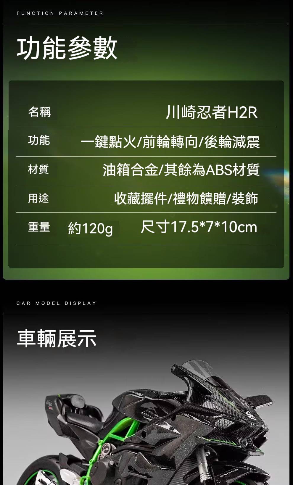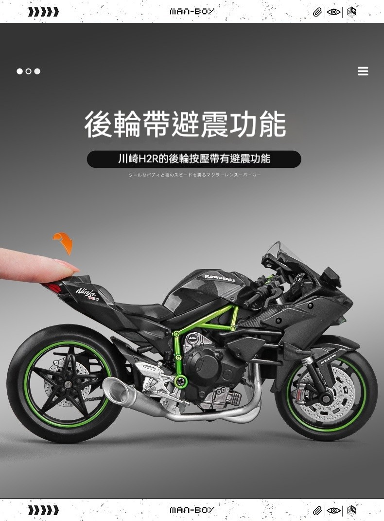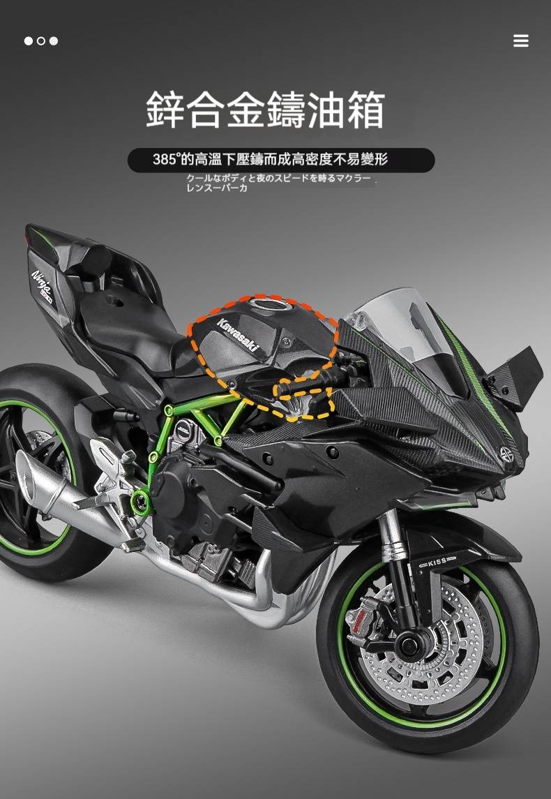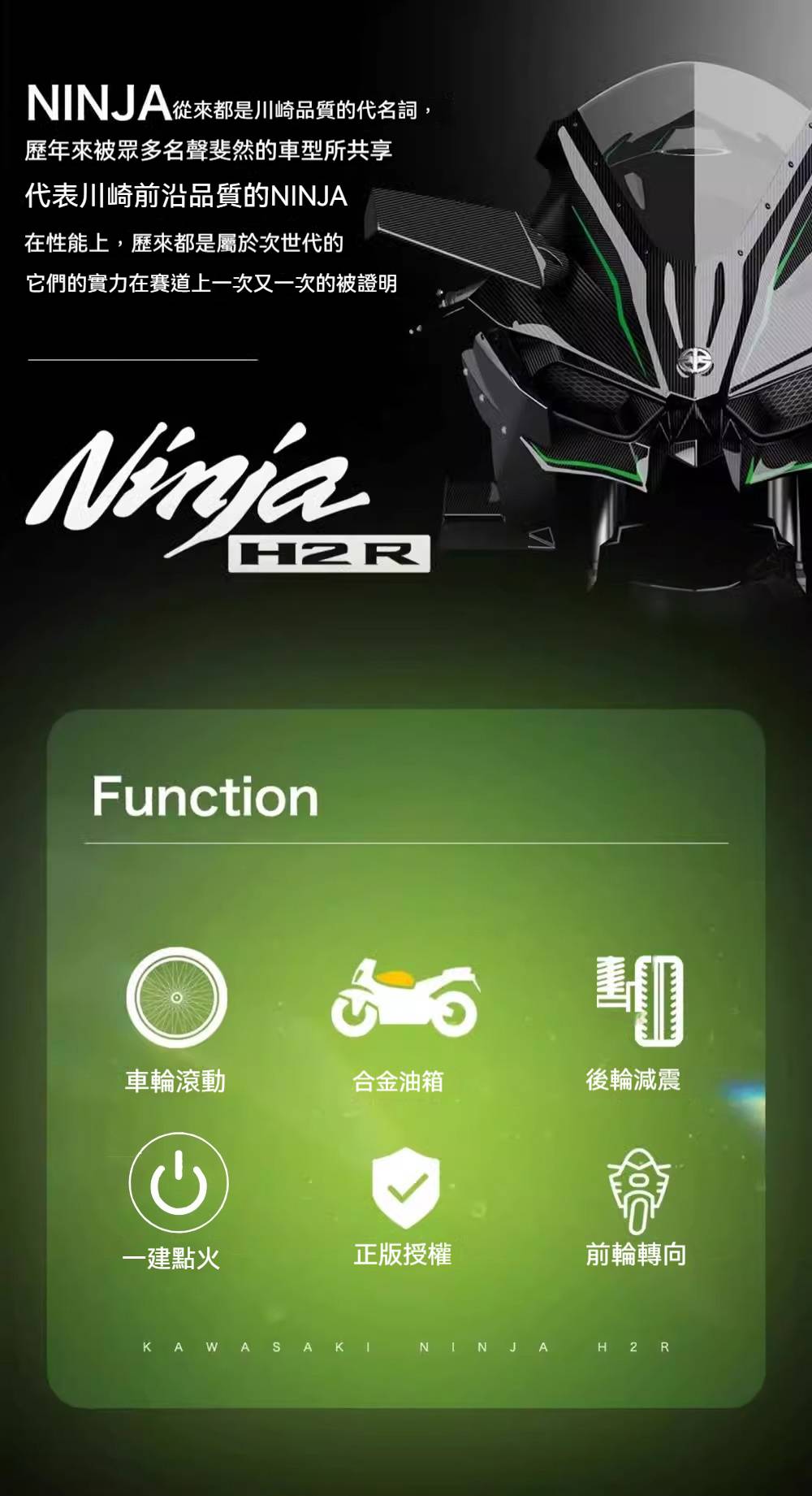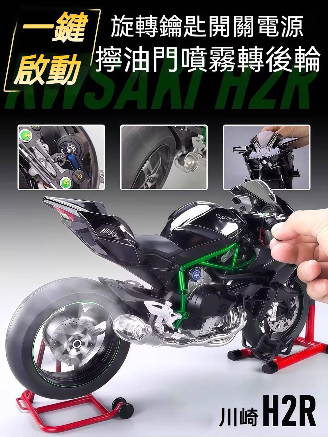 【日本正版授權】川崎忍者H2r 摩托車模型 一鍵啟動/前輪轉向/後輪減震