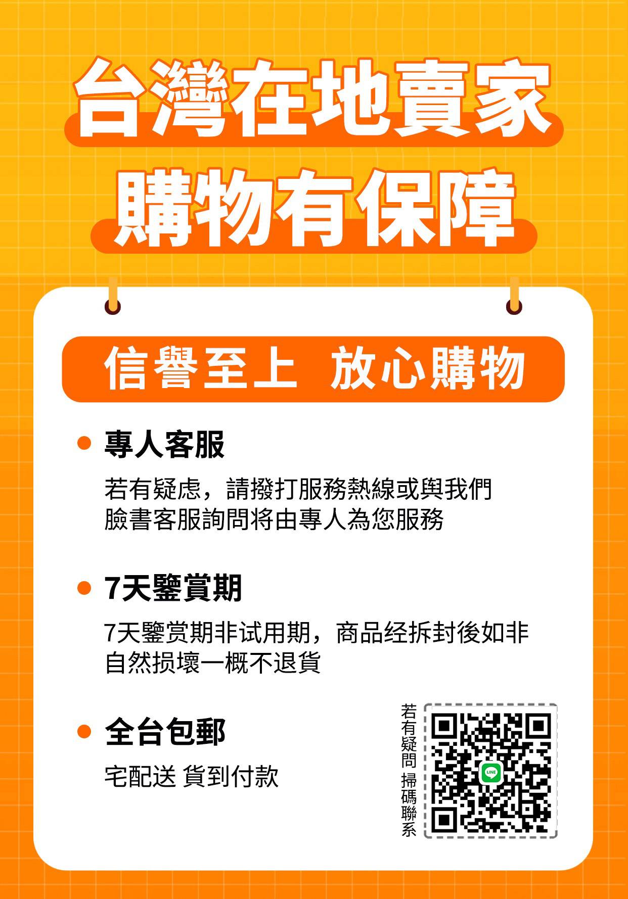 選擇貨到付款,全台灣免運費,安全放心